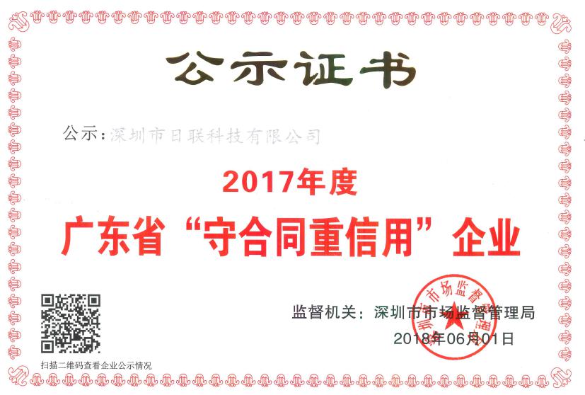 近日,广东省工商行政管理局发布关于2017年度 “广东省守合同重信用企业”的公告,米兰科技凭借十多年来的积累与信誉,再度荣获“守合同重信用企业”这一荣誉称号。