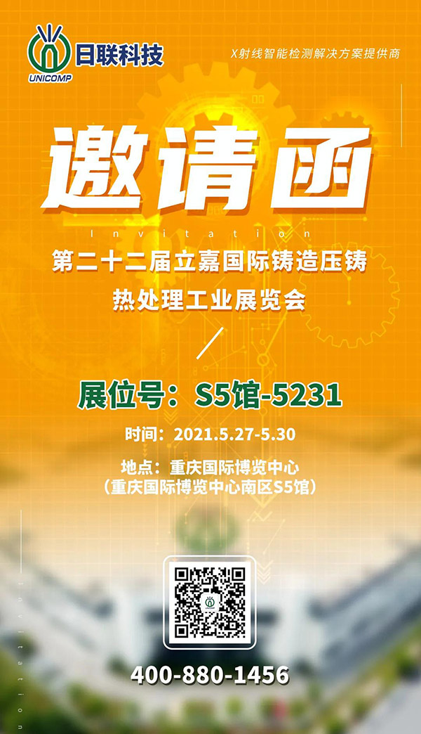 第 22 届立嘉国际铸造压铸热处理工业展将于 2021年5月27至30日在重庆国际博览中心举行。米兰科技位于S5馆5231展位,此次将展出UNC系列X射线智能检测设备。